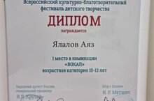 Гордимся Победой Ялалова Аяза, учащегося класса Эстрадно-джазового вокала преподавателя Шайхеловой Риммы Миргасимовны, во Всероссийском культурно-благотворительном фестивале детского творчества "Добрая Волна". Фестиваль создан в 2017 году по инициативе Мэра Казани Ильсура Метшина и народного артиста России, композитора Игоря Крутого.
