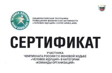 С 15 октября по 15 ноября текущего года проходил Чемпионат России по фоновой ходьбе "Человек идущий" в категории "Команды организаций". Нашу школу представляли 20 преподавателей. Каждый участник получил сертификат. Поздравляем!