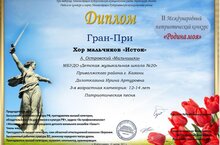 Поздравляем Хор мальчиков "Исток" и его руководителя Долотказину Ирину Артуровну с высокой наградой II Международного патриотического конкурса "Родина моя" - Гран-При!!!