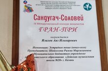 Ялалов Аяз, яркий, талантливый учащийся класса преподавателя ДМШ №20 Шайхеловой Риммы Миргасимовны, удостоен высокой награды IX Международного конкурса вокалистов "Сандугач - Соловей" - Гран-При!!!