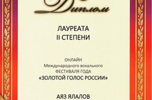 Новая вершина! Ялалов - "Золотой Голос России" - Лауреат Международного Вокального Фестиваля Года, учреждённого продюссерским центром ЭКТВ Ptoduction, Академией Эстрады и Телевидения в "Останкино" г.Москва!!!