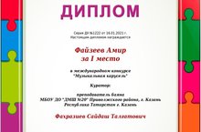 Поздравляем с успехом и победой в Международном конкурсе "Музыка Мира" - преподавателя ДМШ20 Галимуллину Лейсян Ахмадуловну - в номинации "Методические работы"