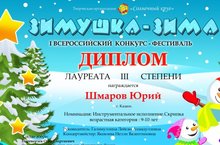 Поздравляем учащихся класса преп. Галимуллиной Л.А., конц. Яковлева Н.В.: Шмаров Ю. - Лауреат III ст.