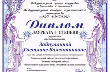 Поздравляем преподавателя ДМШ № 20 - Зайнуллину С.В. - Лауреат I ст. Международного конкурса педагогического мастерства "Art Victory"