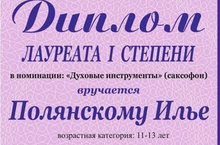 Поздравляем учащегося класса преподователя Оськина М.Е.- Полянский И.- Лауреат I ст.