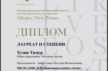 Международный конкурс виртуозного исполнительского мастерства «Allegro.Vivo.Presto» — Хузин Т. — Лауреат II ст., преп. Зайнуллина С.В.