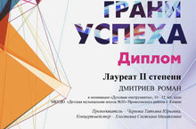 Поздравляем учащегося класса преп. Черновой Т.Ю., конц. Хлёсткина С.М. - Дмитриев Р. - Лауреат II ст.