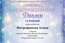 Поздравляем учащуюся преп. Хасановой В.Х. - Митрофанова А. - Лауреат I ст.