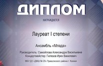 Поздравляем Фольклорный ансамбль "Млада", рук. Самойлова А.В.,конц. Гилязов И.В. - Лауреат I ст.