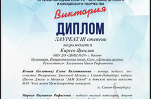 Учащиеся класса преподавателя ДМШ20 Хайнс Елены Николаевны празднуют конец учебного года яркими успехами и победами!!! Поздравляем!!! VII Международный конкурс для детей и молодежи "Все талантливы" - учащиеся класса фортепиано, преп. Хайнс Е.Н. - Алимова Д. - Победитель I место, Ионычева Е. - Победитель I место, Ионычева - Победитель I место, Зинурова Д. - Победитель I место