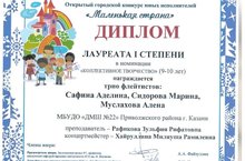 Вокальный ансамбль Хабибуллина Дина и Фасихов Рамазан - диплом участника, преподаватель Абдуллина Гульназ Талиповна;