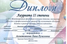 72 Международный фестиваль-конкурс детских, юношеских, взрослых и профессиональных творческих коллективов "Колорит Казани" в рамказ проекта "Берега надежды" принес нашим ученикам педагога Куркачевой таисии Юрьевны очередные призовые места.