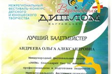 а так же руководителя хораографического коллектива "Кляксы" Андрееву Ольгу Александровну с успешным участием ее коллектива и победой в номинации "Лучший балетмейстер".