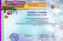 Лауреат I степени: Маинская Анастасия (преп. Харисова Э.Г.)