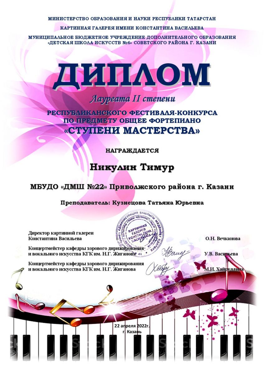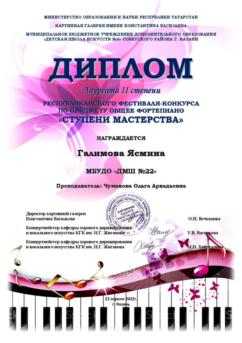 Муниципальное бюджетное учреждение дополнительного образования «Детская музыкальная школа № 22 Приволжского района г.Казани»