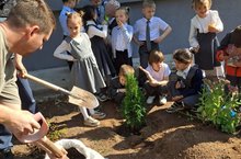 Обучающиеся объединения "Эко-дизайн" (педагог Воробьева Ирина Михайловна) посадили аллею из кустов туи в рамках проекта "Здесь будет мини-парк"