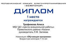 Подведены итоги Республиканский конкурс Scratch – программирования “Scratch Up”. Победителями стали обучающиеся объединения «Занимательная информатика» ( руководитель Заляева Луиза Мустафовна):