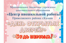 "Центр внешкольной работы" Приволжского района приглашает 3 сентября 2021 года в 17:30 на День открытых дверей "Будь первым!" по адресу: ул.Камая, 13