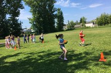 Работа в летнем лагере продолжается. Для ребят были подготовлены и проведены веселые занятия - "Мы со спортом дружим", "Футбол" и "Рисуем на асфальте".