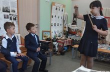Учащаяся объединения "Юный музеевед" (педагог - Колсанова Валентина Ивановна) Абдуллова Марьям провела знакомство с экспонатами музея. Марьям рассказала ребятам о музее боевой славы и труда, об экспонатах музея, предметах старины, кухонной утвари, книгах памяти и др.