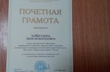 Почетная грамота за весомый вклад в обучение и воспитание детей и многолетний добросовестный труд 28.10.2015