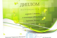 Диплом 1 степени в Городском фестивале по вокалу 10.12.2014