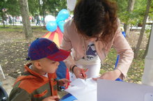 09.08.14 наш центр принял участие в открытии универсальной спортивной площадки. Дети ипедагогиорганизовали выставку спортивных достижений. Наши юные спортсмены показали свои награды и навыки.