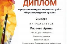 По итогам городского конкурса творческих работ "Мир литературных красок" учащиеся объединения "Палитра идей" (педагог - Ермакова А.С.) заняли призовые места: