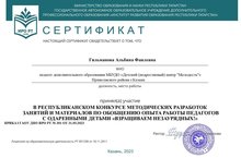 В Республиканском конкурсе методических разработок занятий и материалов по обобщению опыта работы педагогов с одаренными детьми "Взращиваем незаурядных" приняла участие педагог дополнительного образования Гильманова А.Ф.