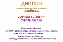 По итогам второго городского конкурса "Звуки мира" в номинации "Вокал" учащиеся ДПЦ "Молодость" объединения "Вокальный ансамбль "До-Ре-Mix"" (педагог - Гильманова А.Ф.) заняли призовые места: