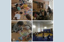 Сегодня, 1 июня в отрядах проведены спортивные игры "Движение - это жизнь!" (педагог - Блашенкова Т.А.), ребята поиграли в динамичные игры с мячом. На занятии декоративно-прикладного творчества (педагоги - Чуракова Д.А, Ермакова А.С.) ребята выполнили красивую поделку "Змейка" и яркую аппликацию "Солнышко". В ходе познавательного часа (педагог - Назмутдинова Ф.Г.) была организована игровая программа "Ура! Каникулы!". В процессе занятия по изобразительному искусству (педагог - Сиразиев И.И.) мальчики нарисовали рисунки на тему "Армия", а девочки на тему "Моя семья".