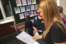 Во время акции ребята дарили улыбки и раздавали листовки в виде смайликов прохожим.