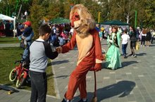 Педагоги ДПЦ "Молодость" в парке "Калейдоскоп" представили интерактивную программу с участием любимых героев: Симка и Нолик, Маша и Медведь.