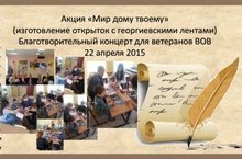 Акция: "Мир дому твоему", благотоврительный концерт для ветеранов 22.04.2015 Изготовление открыток с георгиевскими лентами
