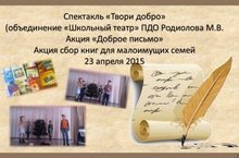 Спектакль "Твори добро", акция: "Сбор детских книг" 23.04.2015