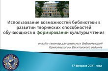 Районный семинар для школьных библиотекарей Приволжского и Вахитовского районов 17.02.2021