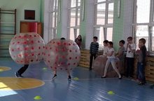 Сегодня наш день в пришкольном лагере прошел очень весело и задорно. Ребята участвовали в эстафетах, спортивных играх и соревнованиях в больших шарах-бамперболах.
