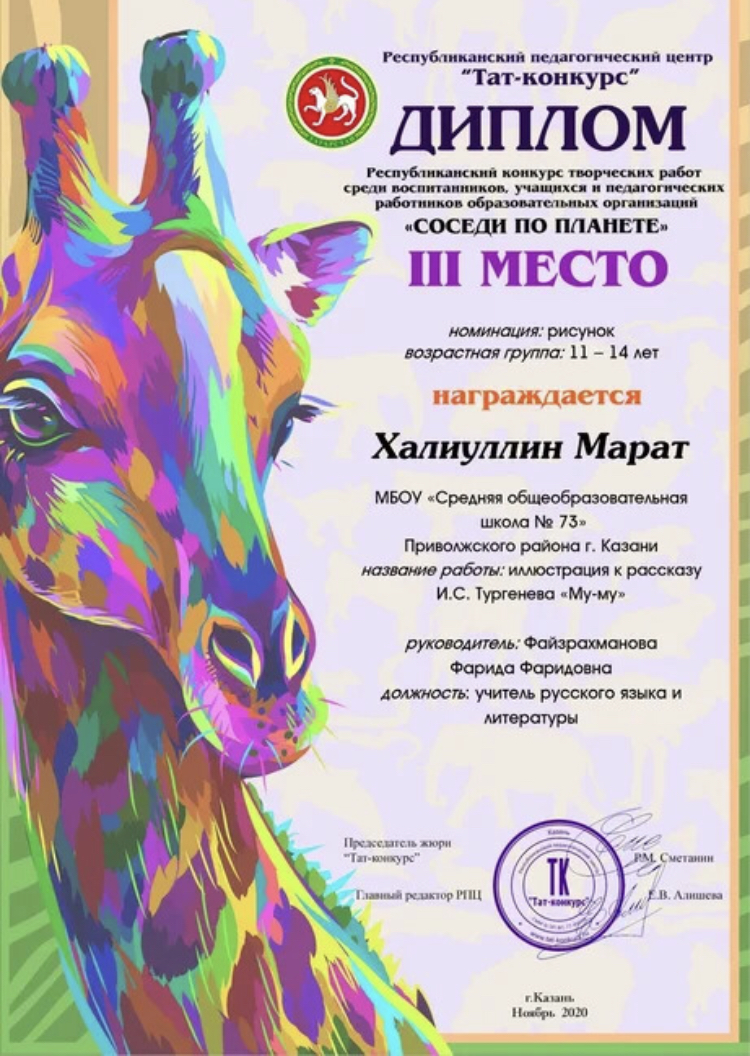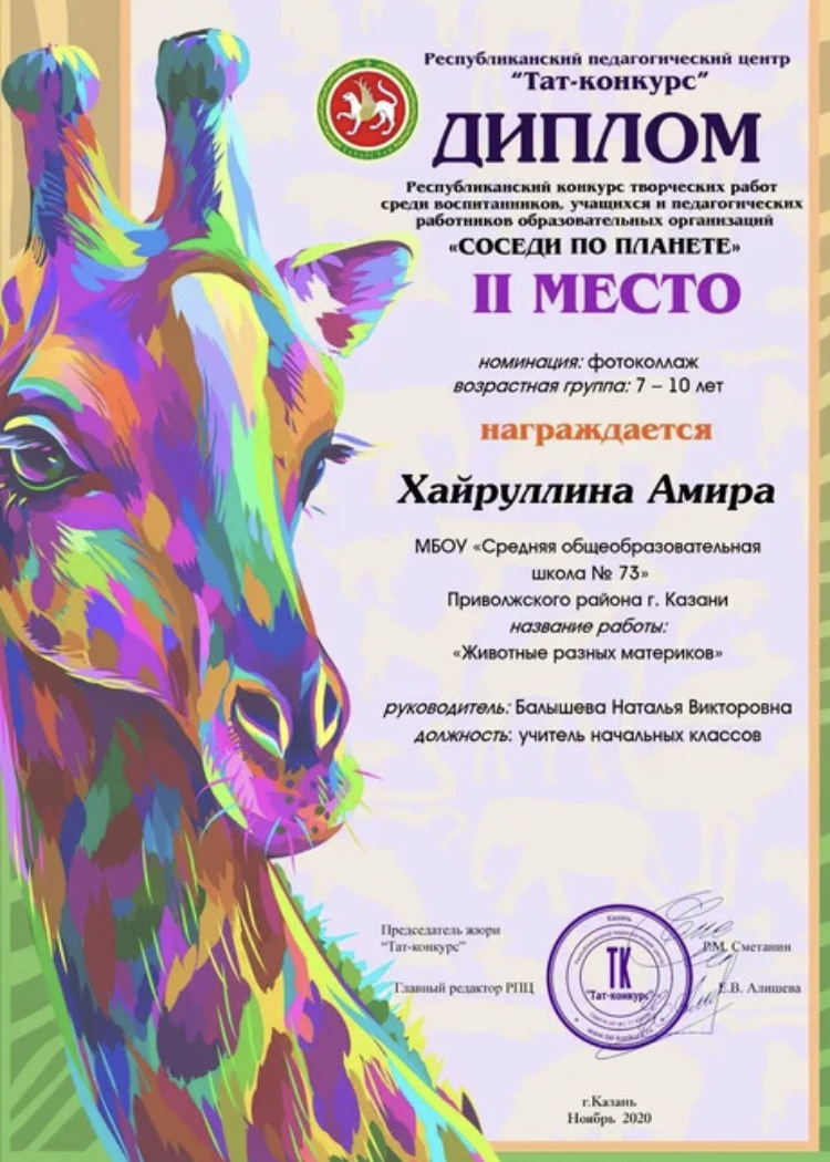 Опубликовано: 24.12.2020От всей души Поздравляем наших учеников ставшими призёрами в Республиканском конкурсе творческих работ «Соседи по планете»: