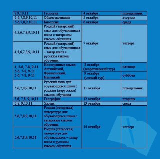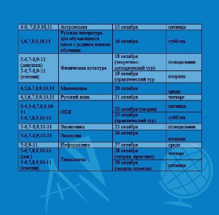 График проведения Всероссийской Олимпиады Школьников