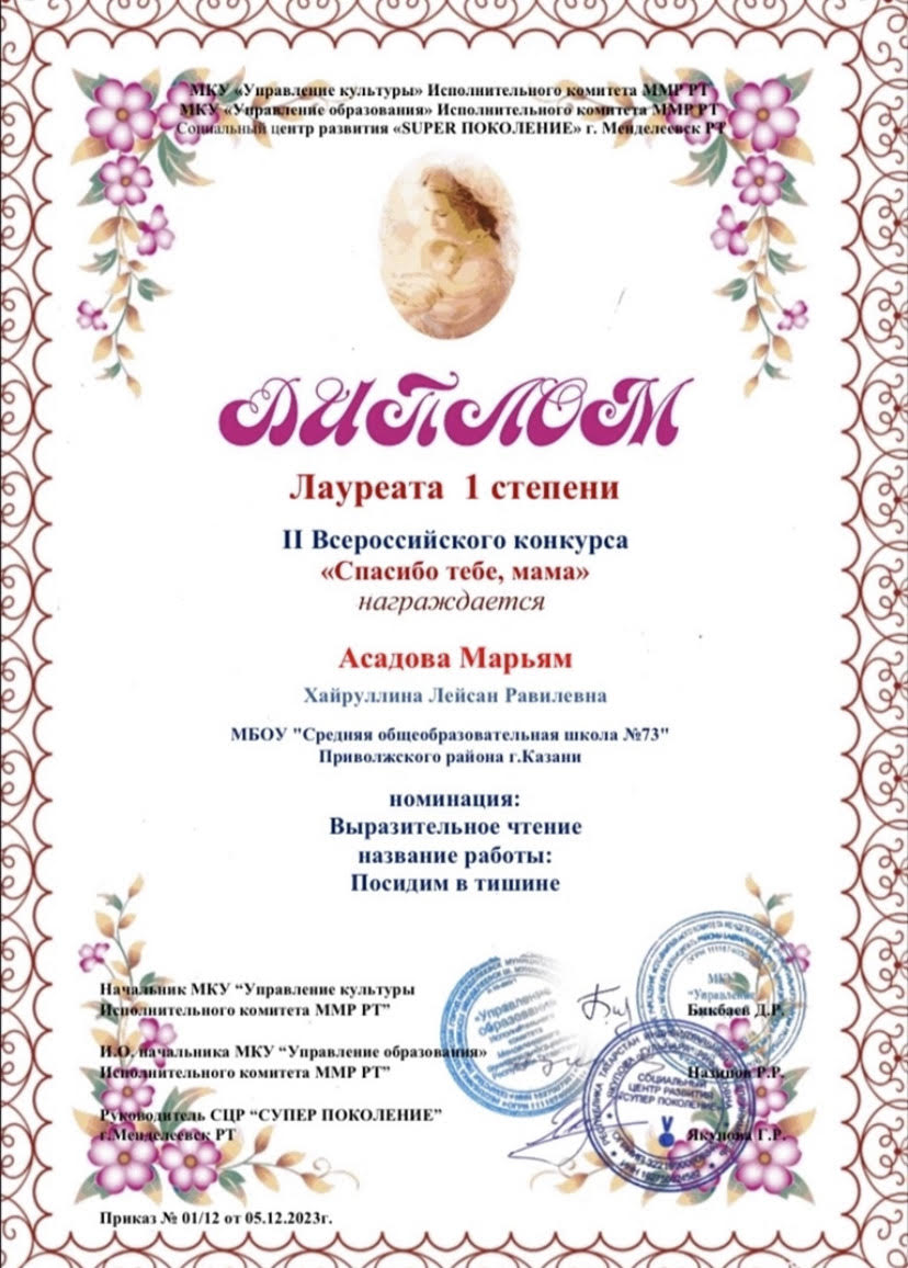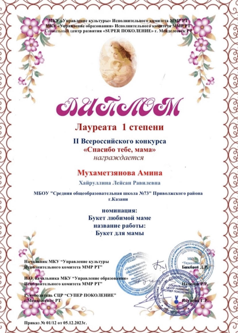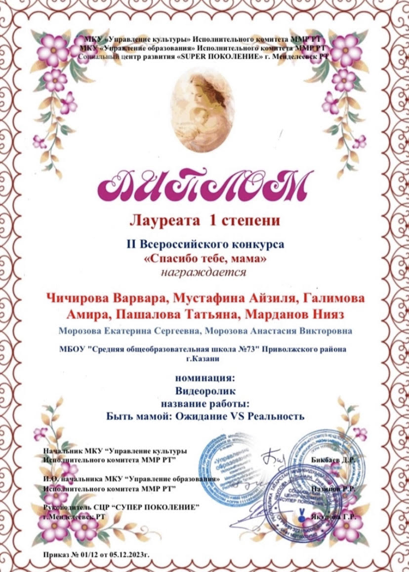 Опубликовано: 11.12.2023... дорогие учителя, эти успехи были бы невозможны. Вы вдохновляете наших детей и помогаете им раскрыть свой потенциал. Также хотим выразить благодарность родителям наших учеников за их постоянную поддержку и помощь. Ваша вера в своих детей – это то, что действительно мотивирует их к большим свершениям. Мы гордимся нашими ребятами и их достижениями. Искренне поздравляем их с этим замечательным результатом!