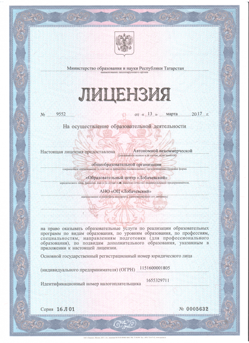 Автономная некоммерческая общеобразовательная организация «Образовательный центр «Лобачевский» Приволжского района г.Казани