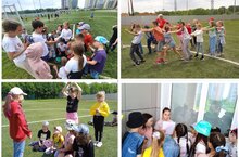 В День защиты детей, для воспитанников оздоровительного лагеря были проведены игры на сплочение коллектива и акция «Поделись улыбкою своей».