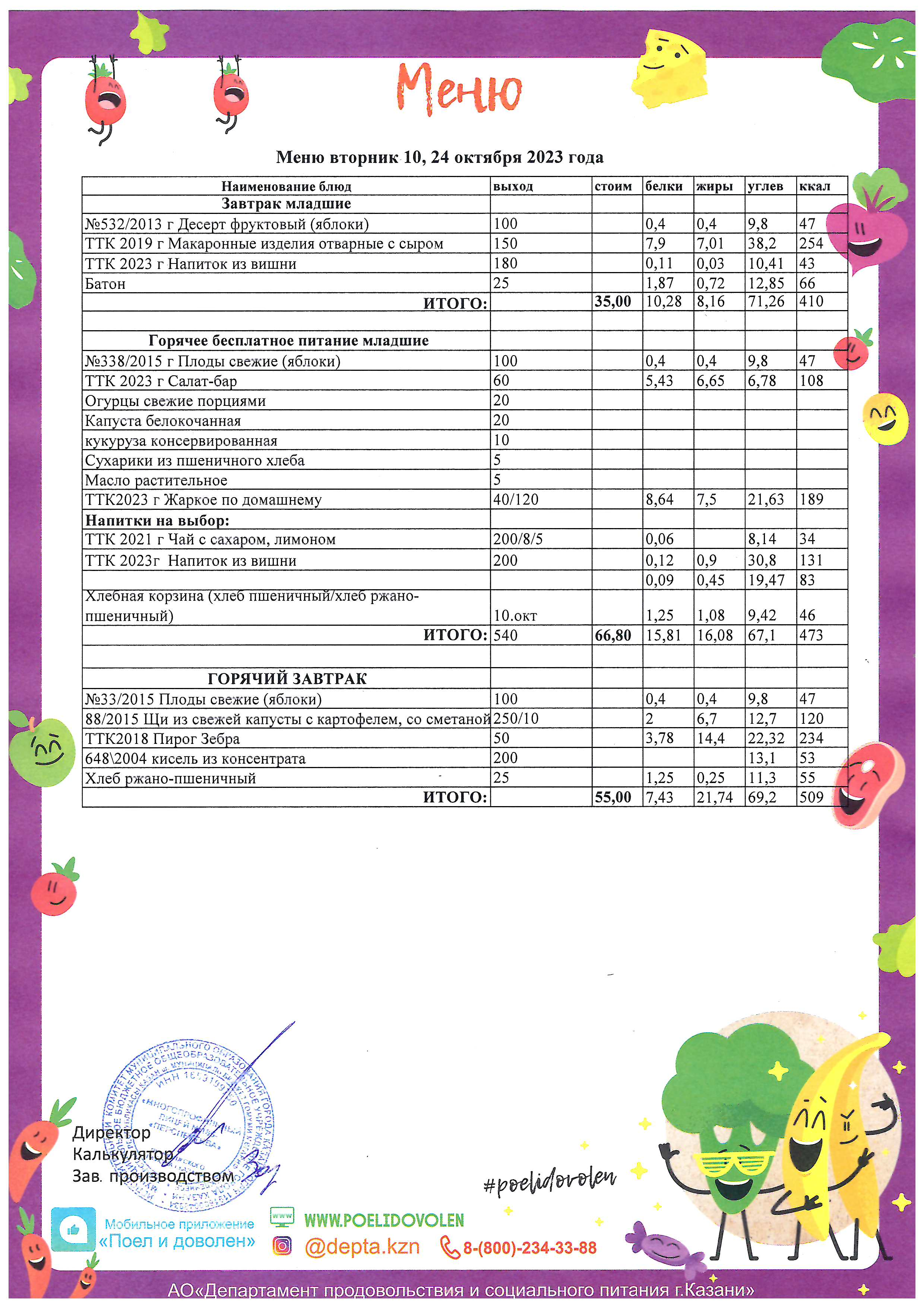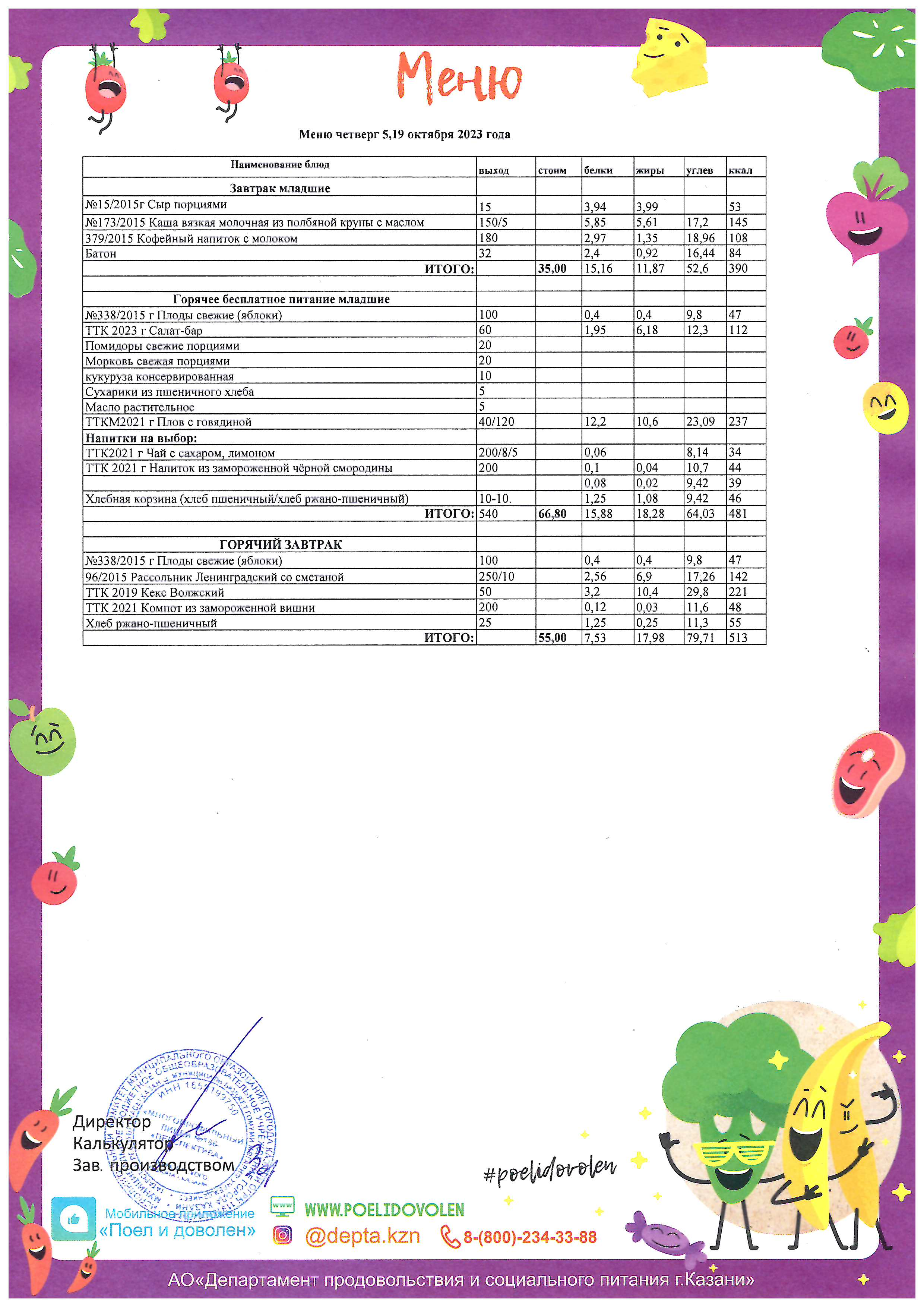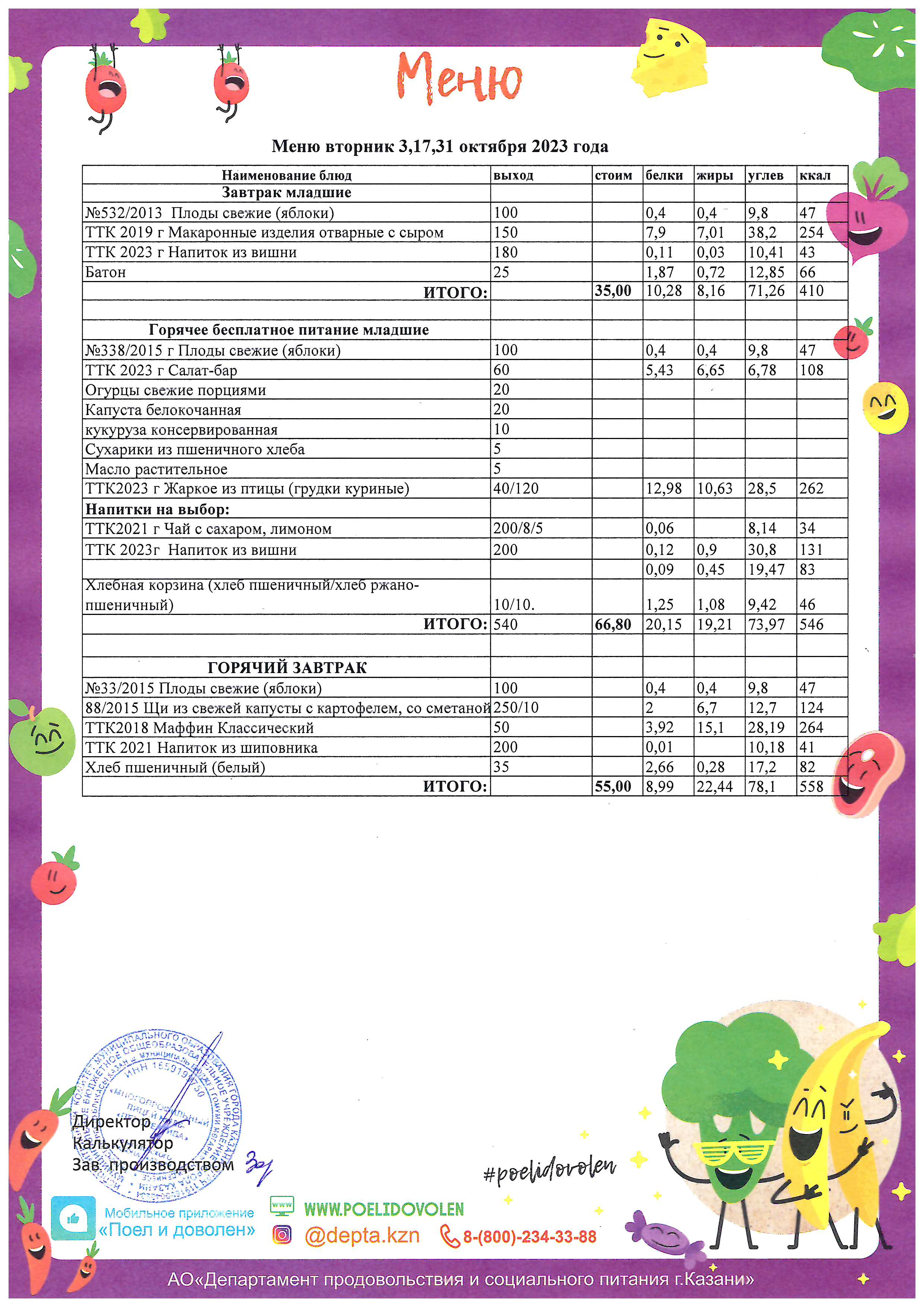 Организация горячего питания в общеобразовательном учреждении осуществляется: АО «Департамент продовольствия и социального питания г.Казани»..