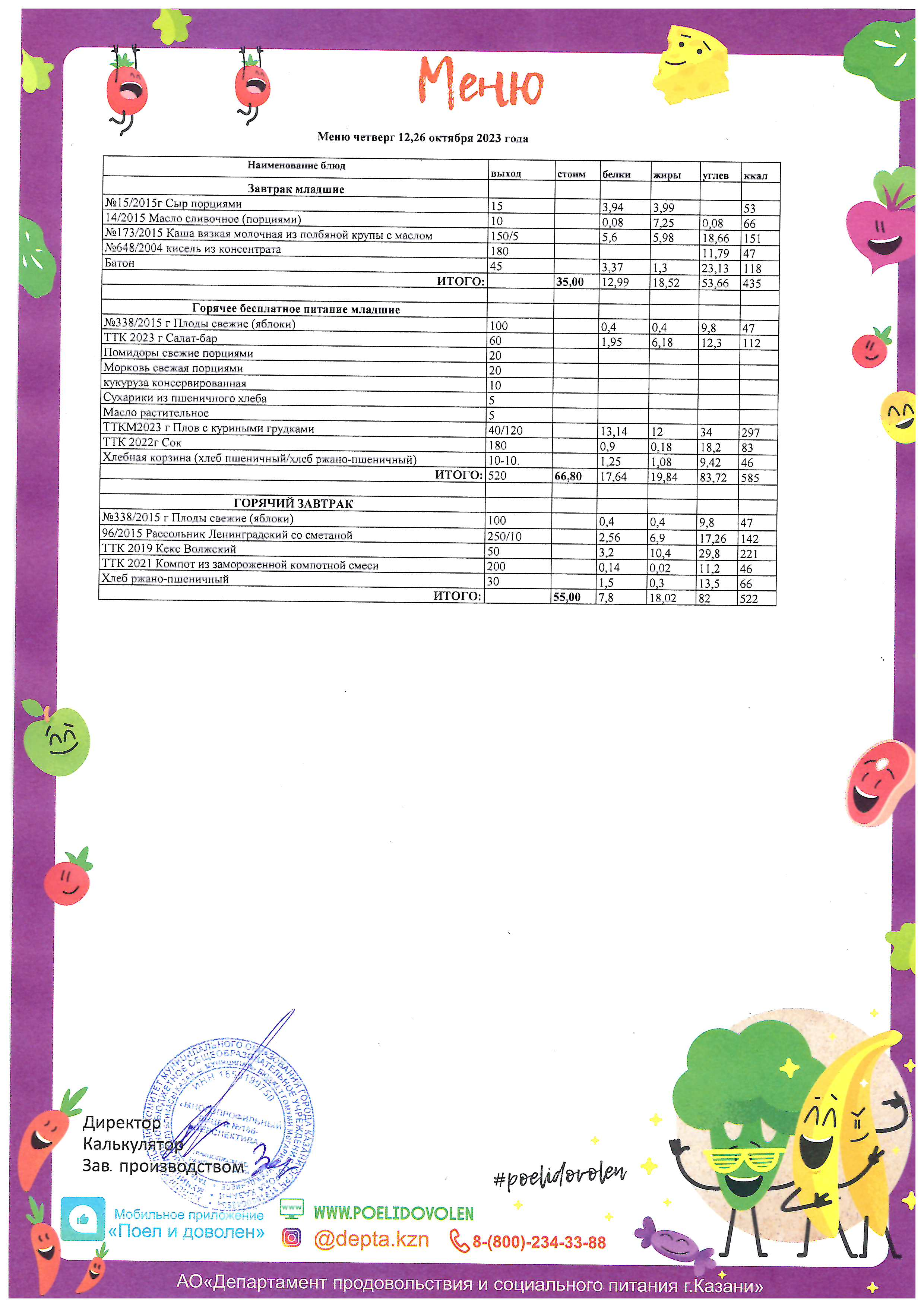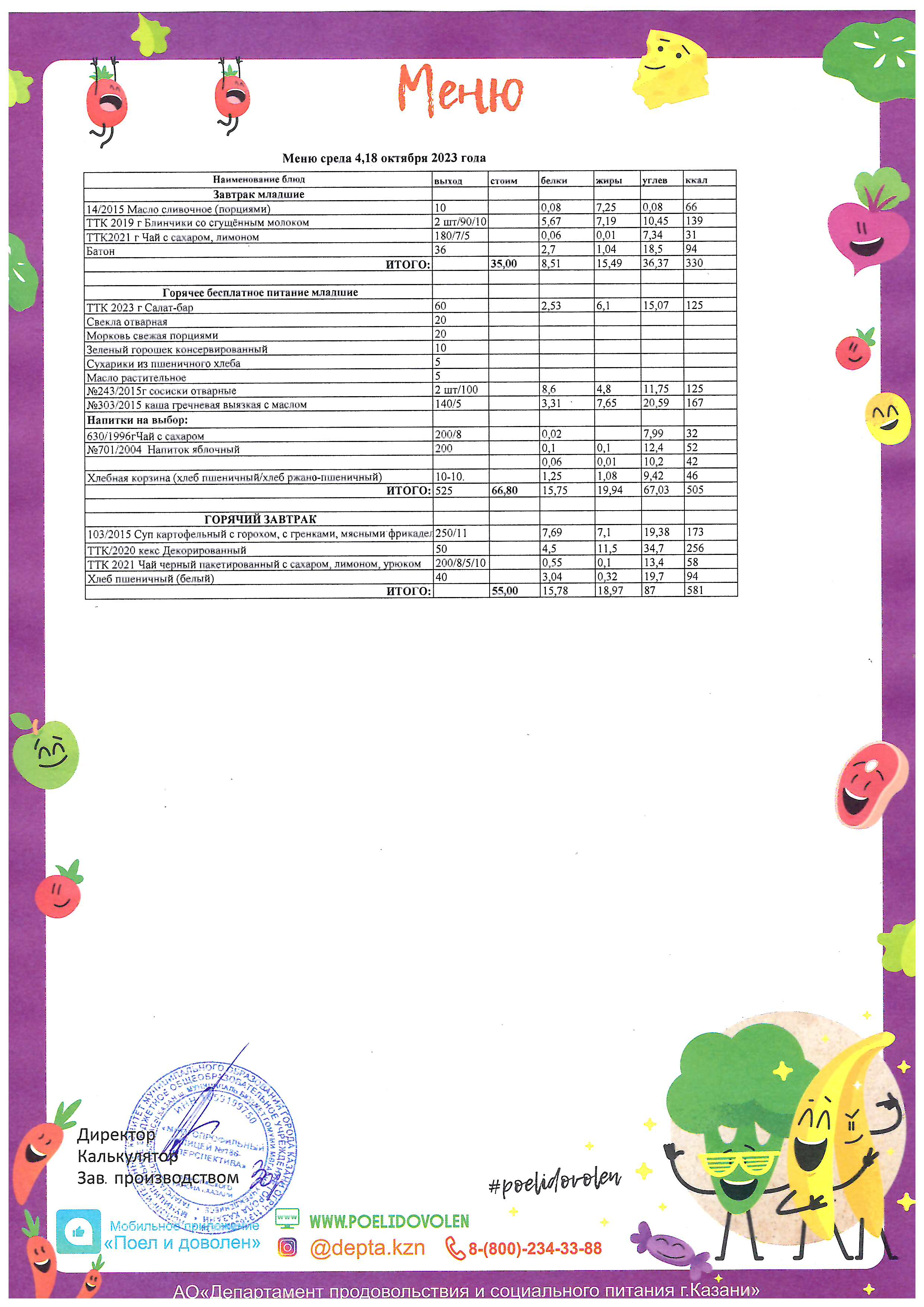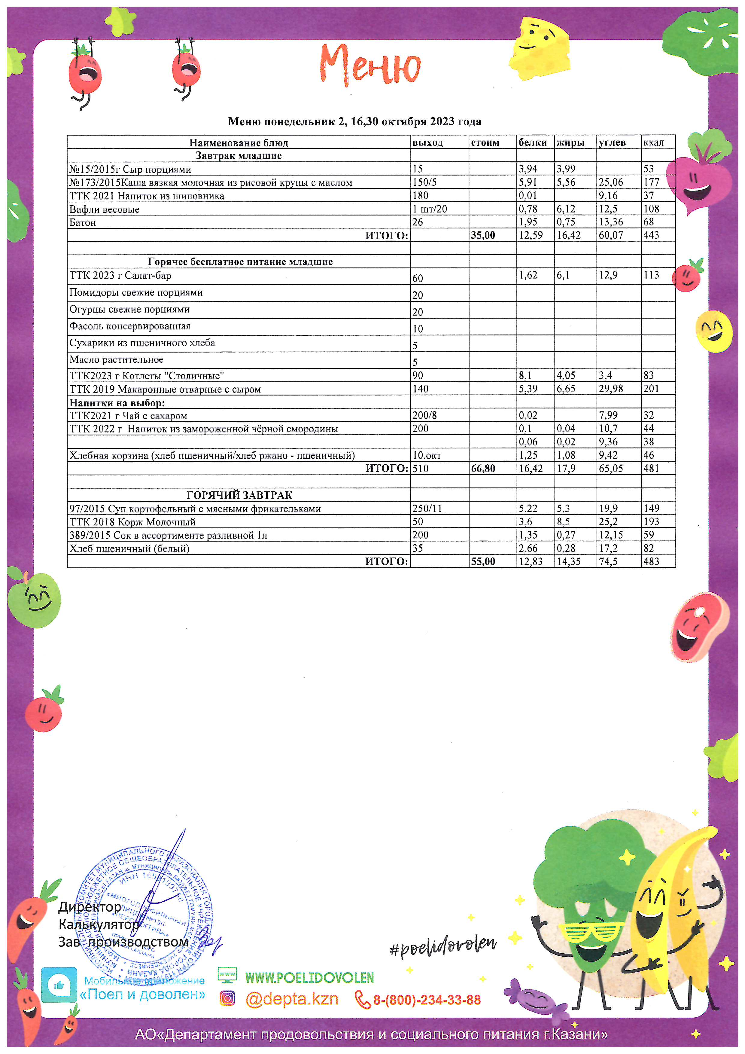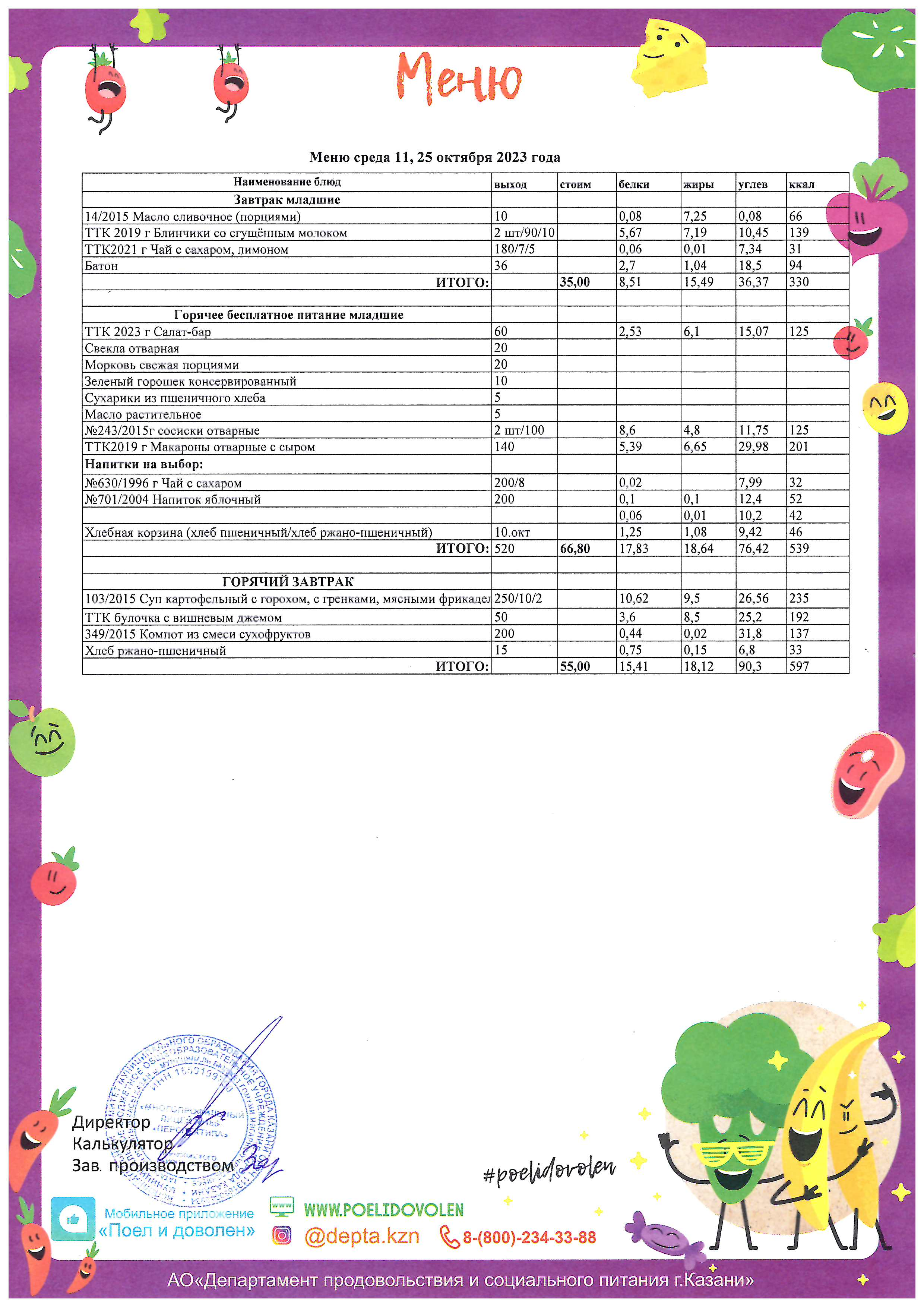 Организация горячего питания в общеобразовательном учреждении осуществляется: АО «Департамент продовольствия и социального питания г.Казани»..