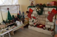 Ожидание новогоднего праздника-самый чудесный период зимнего времени года! Хочется преподнести подарки, сделанные своими руками, поздравить близких с праздником.В связи с этим в детском саду организована мастерская Деда Мороза, где представлены поделки, выполненные родителями и детьми.Все выставочные зоны были оформлены в стиле зимней сказки.