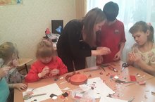 Сегодня для воспитанников детского дома провели мастер-класс по изготовлению и украшению брошей из георгиевской ленты в стиле канзаши