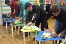 Семейный праздник, посвященный Дню защитников Отечества для ребят и родителей средней группы. Папы весело и дружно выполняли задания: чистили картошку, пеленали малышей, мастерили открытки. Наши папы - лучшие! Победила дружба.