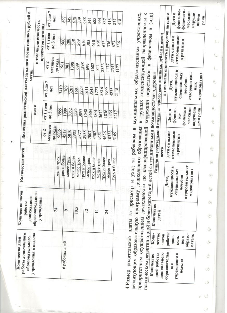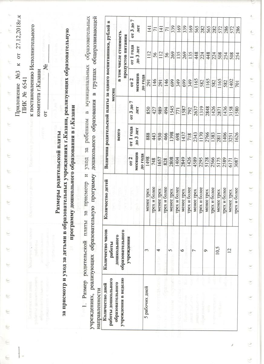 Приложение №3 от 27.12.2018 к ПИК №6541 размер родительской платы