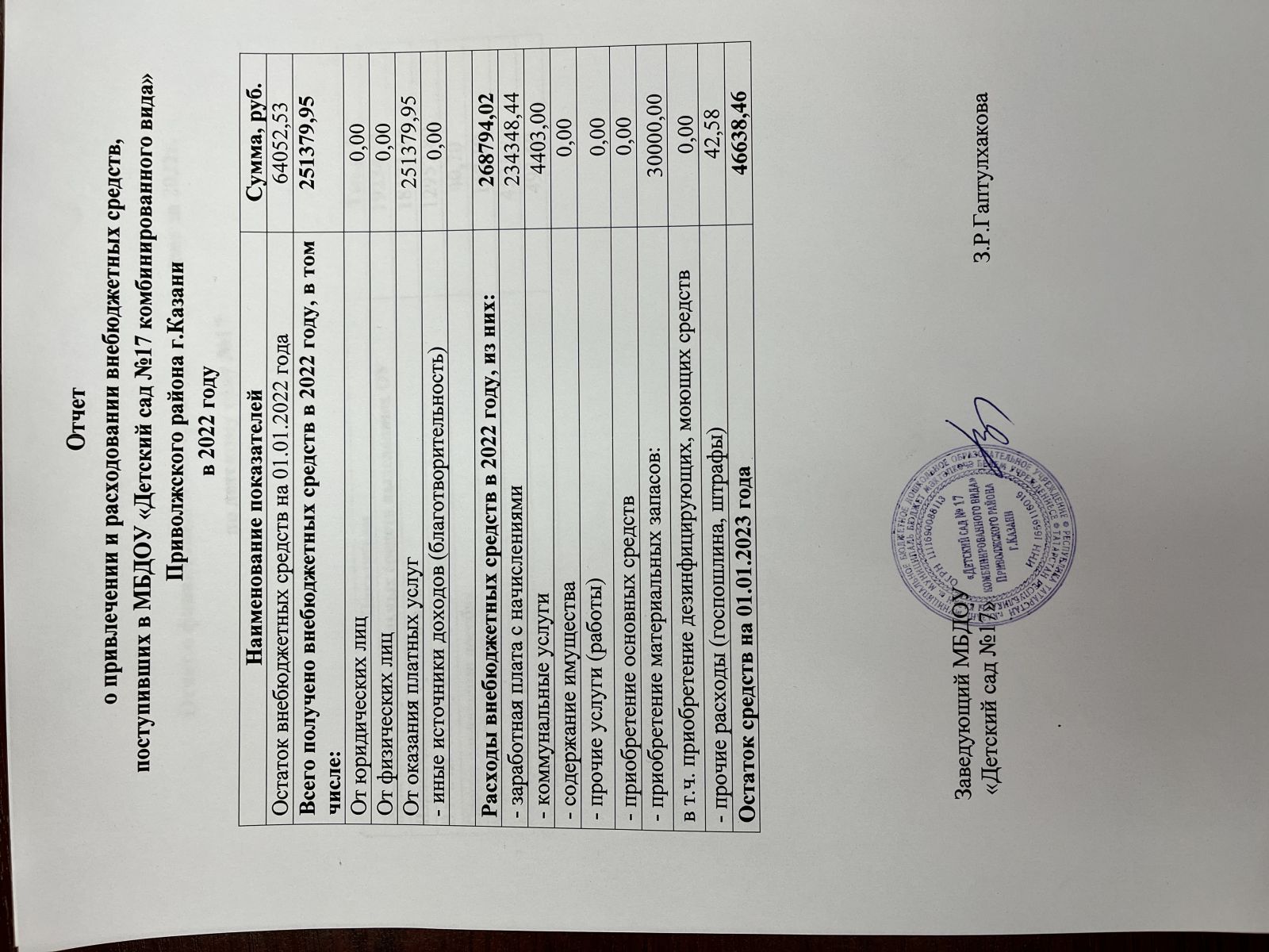 Отчет о привлечении и расходовании внебюджетных средств, поступивших в МБДОУ №17 в 2022г.