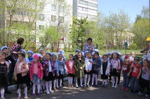 Педагоги и дети нашего детского сада приняли участие в праздничном параде. Ребята маршировали под военные песни, читали стихи.